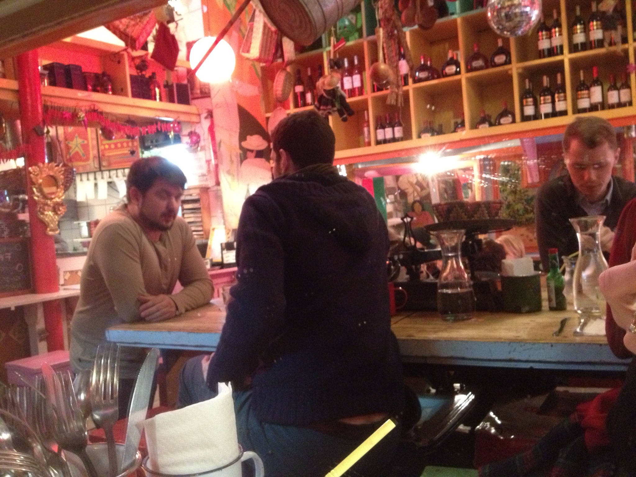 We met Bob and Linda (friends from Maine–Linda is studying art in Paris and Bob, her husband, is here for the week) for drinks at Verjus. But before that Joan and I split a bottle of wine at a nearby bar. We called it a pub crawl though I don’t think it technically qualifies. Verjus is a restaurant/bar owned by two Americans located on the periphery of the Jardins du Palais Royal. Laura, one of the co-owners, is a 20 something gal from Minnesota who’s living the dream! We have to go back for a meal. She promised Joan they would make her a gluten-free meal on request.