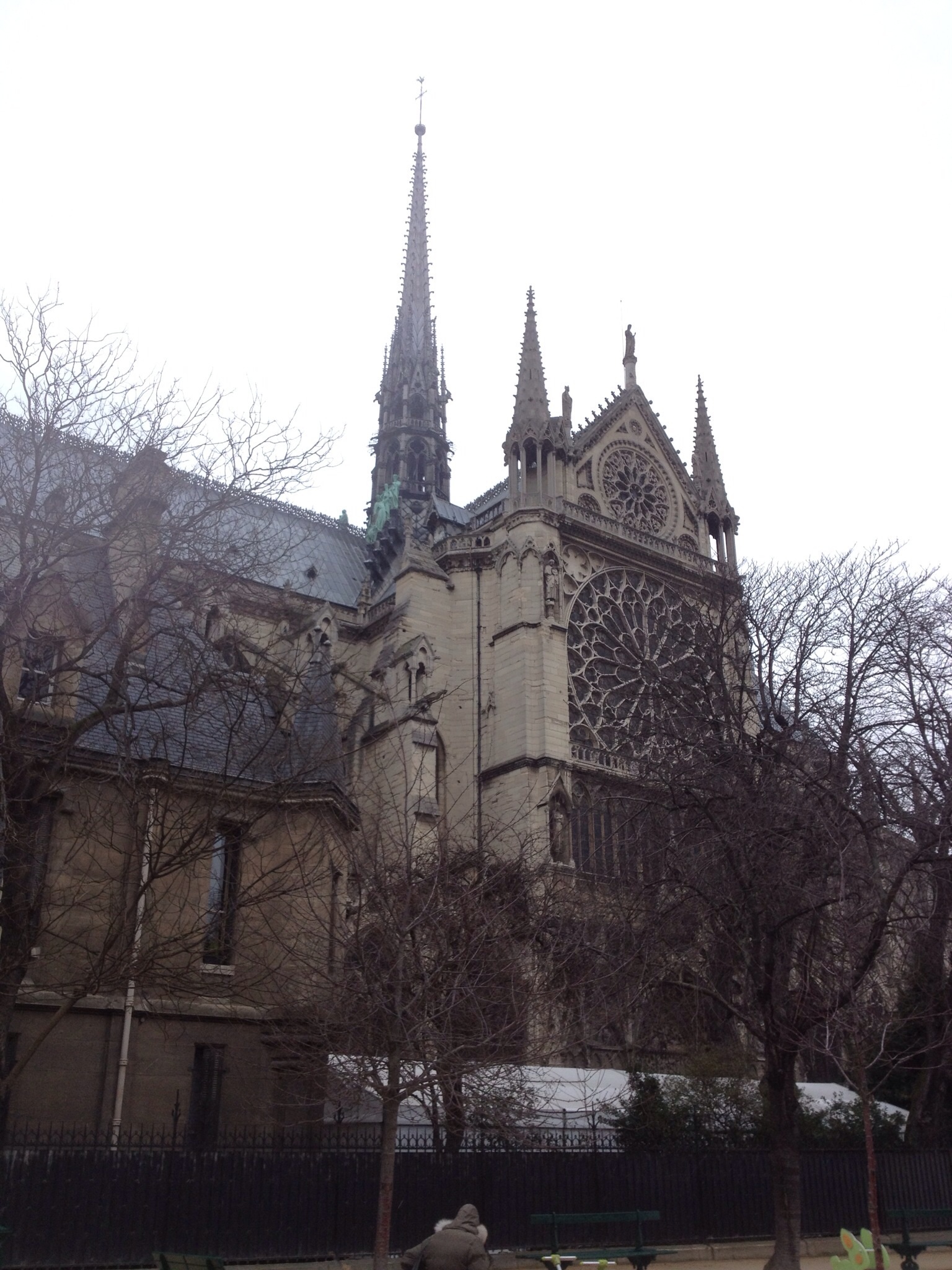 Sunday, Joan was still feeling poorly, so I went to church without her…well, more accurately, I visited Saint-Chappelle and took a stroll past Notre Dame. Construction began on Saint-Chappelle in 1248 on order of the king to house Christ’s the crown of thorns and pieces of the cross. They have been undergoing a renovation of this nearly 800 year old architectural masterpiece since 2008. The stained glass is stunning. There was something cool mentioned about the buttresses here, too, but I didn’t quite catch it. The crowd at Notre Dame (construction began on it in 1148) was enormous so I passed on waiting in line to go inside. Everyone knows about the flying buttresses at Notre Dame. I’ve seen this Gothic wonder many times before and I still stand in awe.