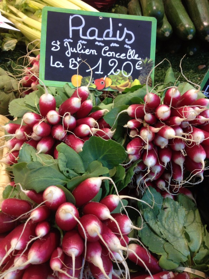I went to bed Saturday night with my familiar friend, a dry cough. I awoke Sunday morning with no voice. We decided that if only Colette could have been with us we would have the deaf (Joan), the dumb (me), and the blind (Colette–who has glaucoma and is legally blind). Isabelle was a wonderful tour guide. We saw a church, a castle, a giant mechanical elephant, Jules Verne’s former home, the best farmers market ever, and strolled through the skinniest street in town. The highlight for me was the lunch that Isabelle prepared using cheese, bread and lettuce purchased that morning at the market. We ate it with charcuterie from Corsica and toasted to Colette who had brought us together.