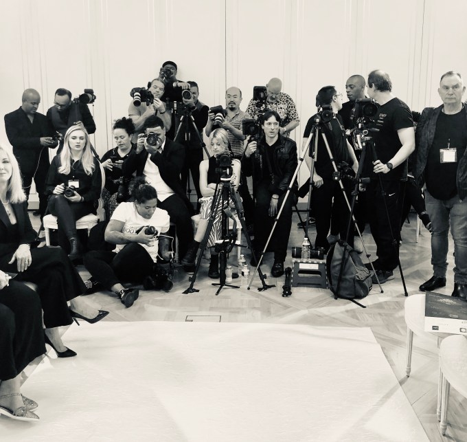 But then there’s everyone else and even with the right clothes I don’t fit in because I am here to listen to the designers tell their stories through their clothing. I look around at all the Kims and Kylies, their eyes trained on their phones either on social media or taking selfies and I think, these are not my people I do not enjoy fashion shows.