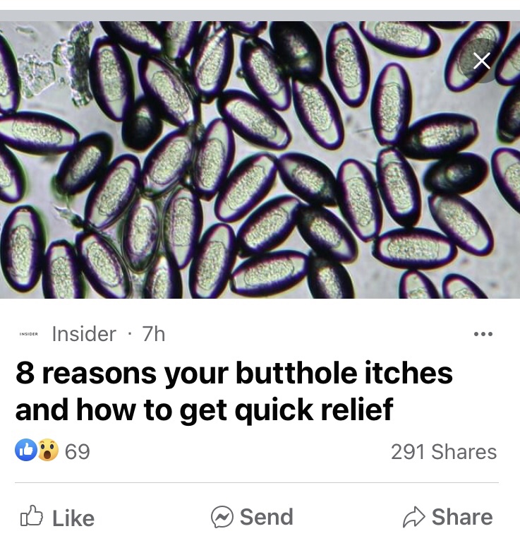 Damn! I wished I’d read this a few days ago when I was ready to kill. But the kicker was why buttholes itch! I could have laughed louder or harder. Thank you! You never fail to delight.