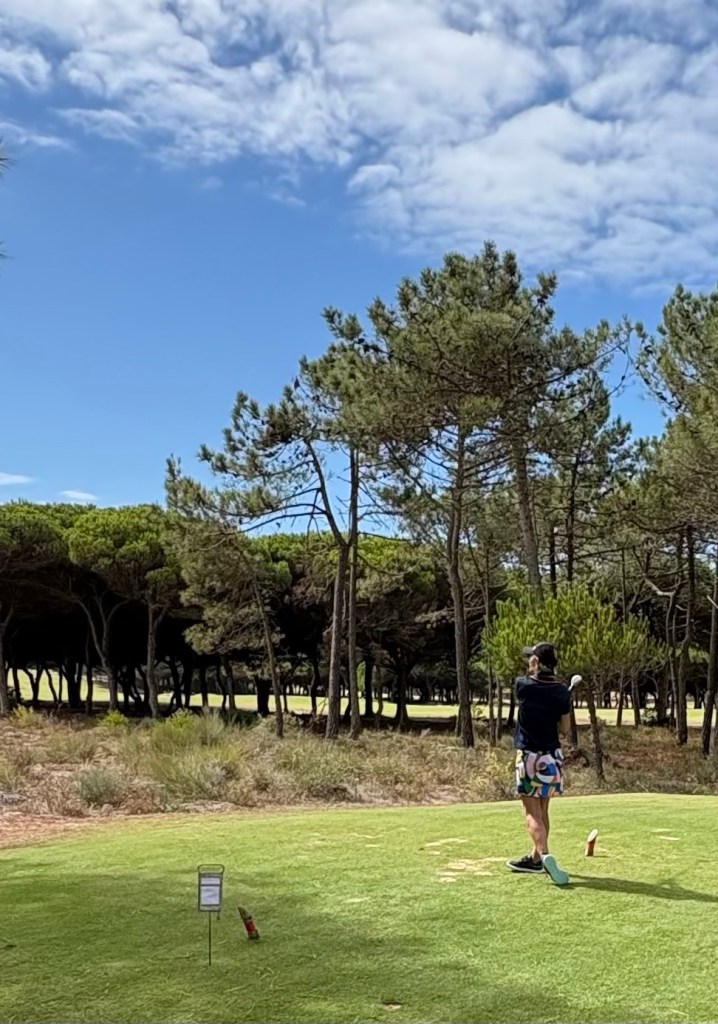 Today we played golf at Oitavos Dunes in Portugal. It is described as a links course that blends seamlessly with nature in the guide book. It is described by me as mean AF.
