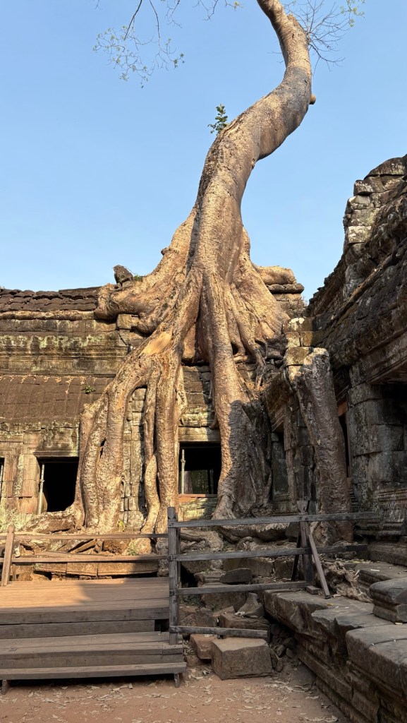 We “templed” a lot. In Seim Reap we visited Ta Phrom. I can’t describe, nor can photos depict the fascinating trees here, snaking and enveloping the temple walls.