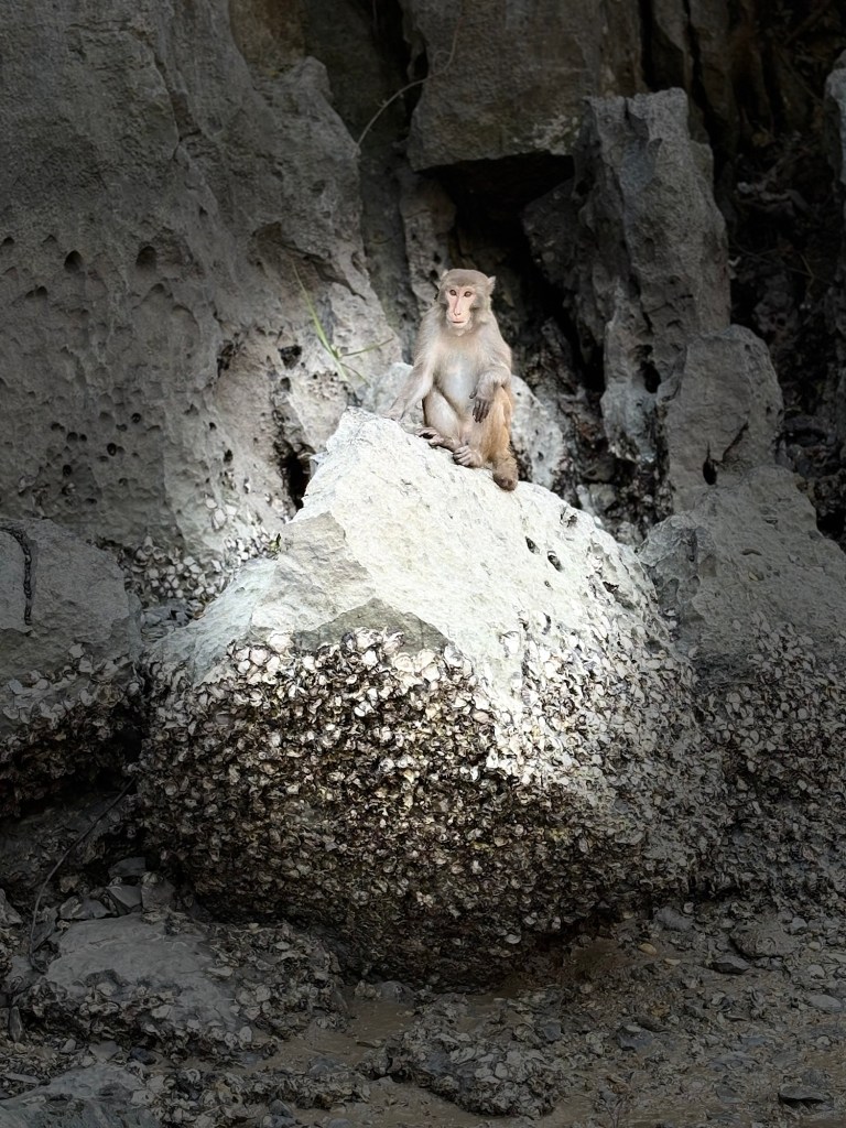 That afternoon we take a row boat ride through a portal between the karsts. Inside we are enveloped by limestone walls. When we are ready to go back to the ship Rosie says, “Di Di—that’s how you say ‘let’s go!’”