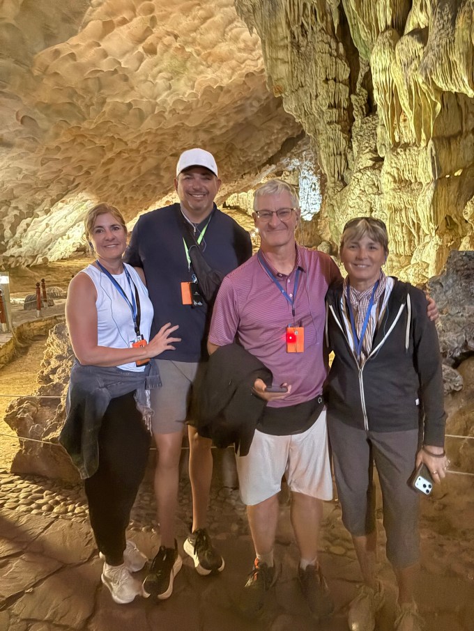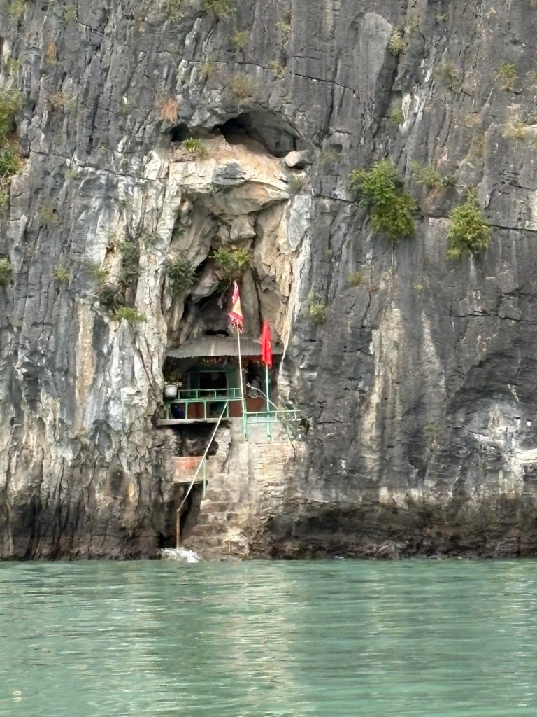 Our first shore excursion is to take a smaller boat to one of the karsts and once there you are to swim in the South China Sea or climb 26 flights of stairs. Goat, Mikey, Kristal and Dirk all climb the narrow switch backs for an eagle’s eye view of the bay.