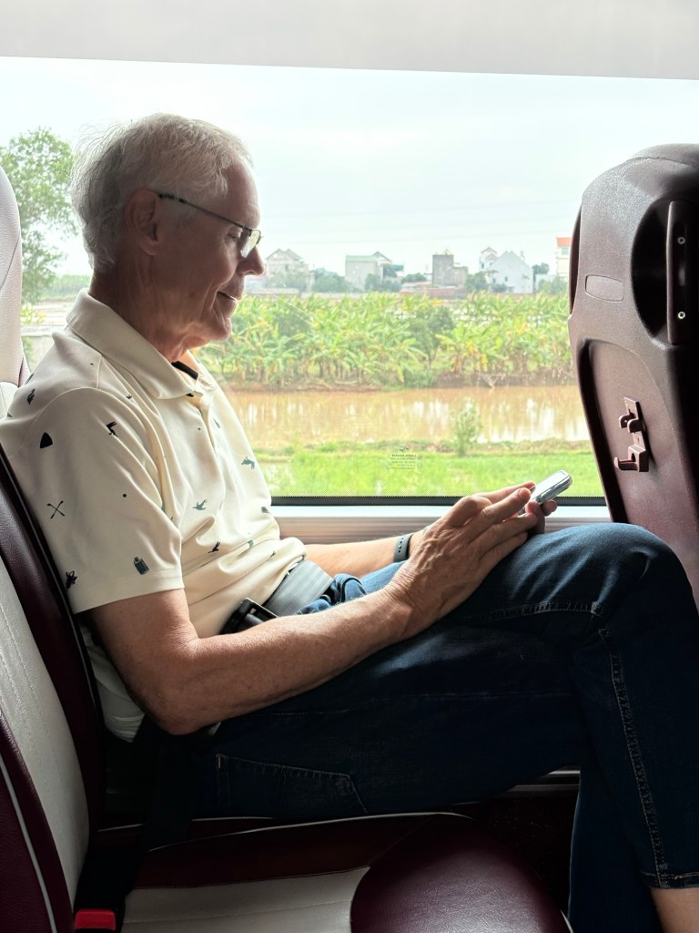 Today, as we pass vast farms on the bus ride back to Hanoi, The Husband is playing solitaire on his phone.